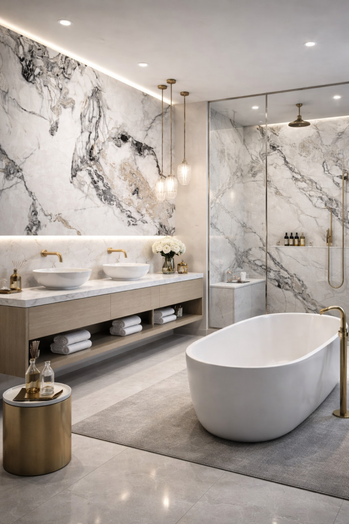 A nagyméretű panelnek köszönhetően minimális illesztéssel alakítható ki egységes falfelület, így a burkolat különösen látványos nappalikban, étkezőkben vagy reprezentatív terekben.