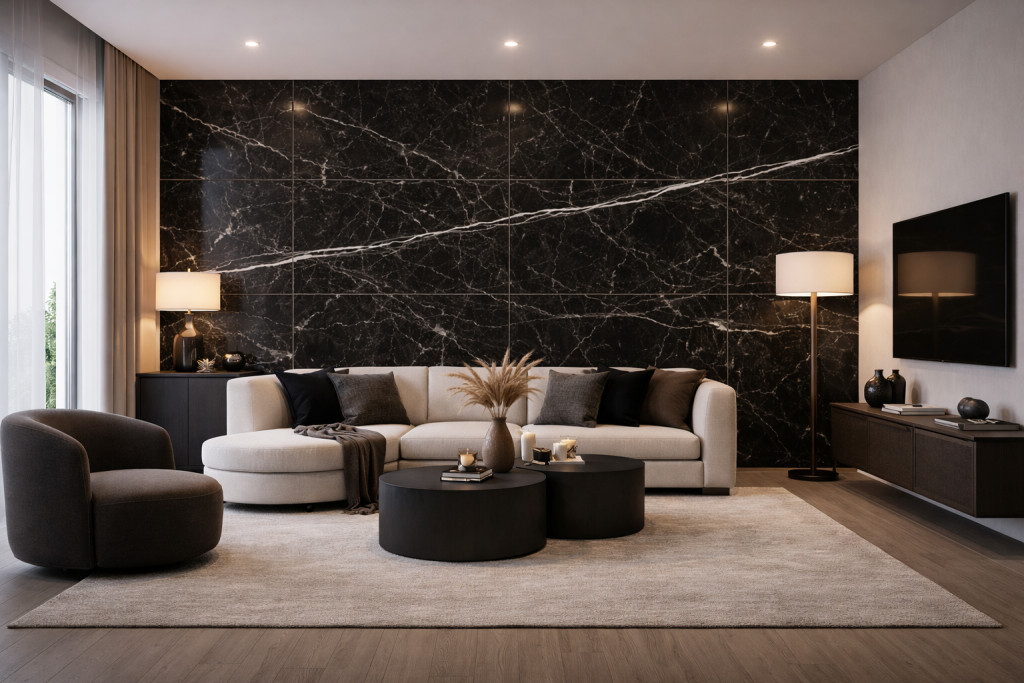 Beltéri SPC falpanel 600x1200x4 mm - fényes fekete márvány