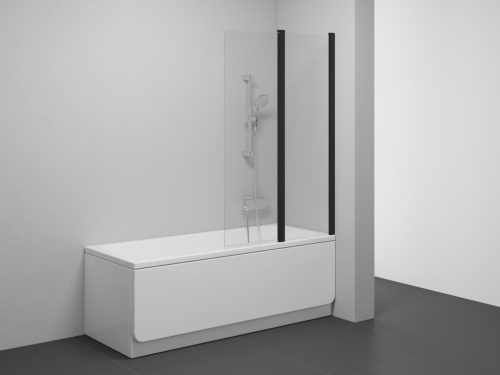 Kétrészes kádparaván téglalap alakú kádakhoz. A forgóoszlopnak köszönhetően a mozgatható részt a kád belső terébe vagy kifelé lehet nyitni. Fekete kivitelben és tiszta üvegből készült betéttel, melyet Ravak AntiCalc® védőréteg borít. Jobb oldali változat.