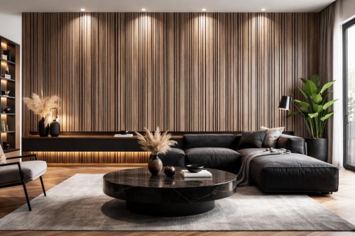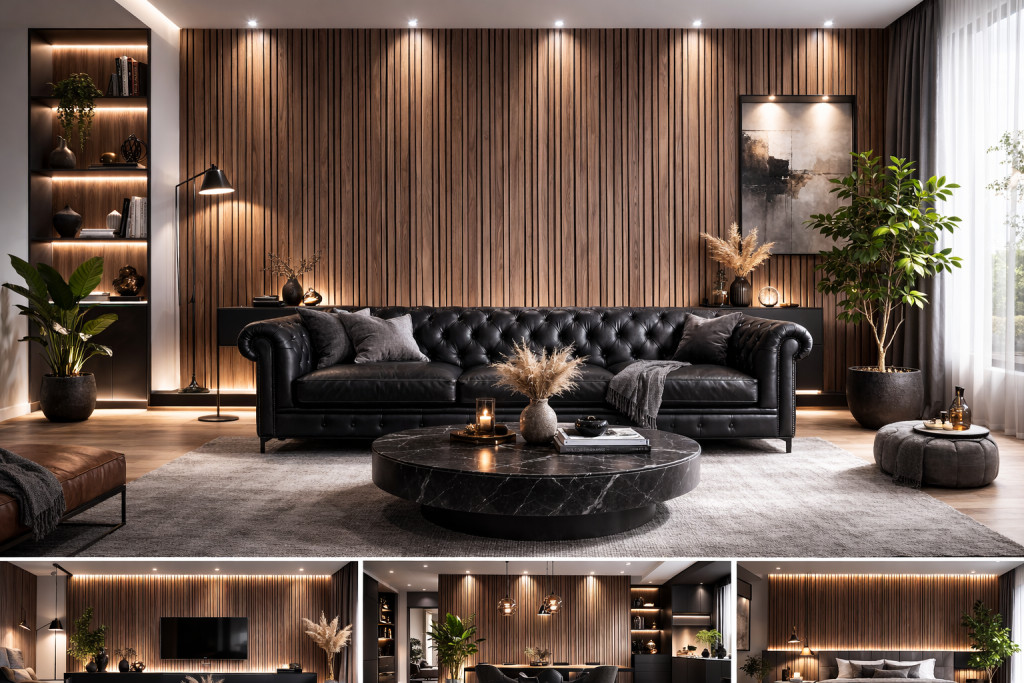 Világos falakkal és fekete bútorokkal kontrasztos, luxus hatás érhető el, míg meleg fényű világítással a panel még mélyebb, gazdagabb karaktert kap.