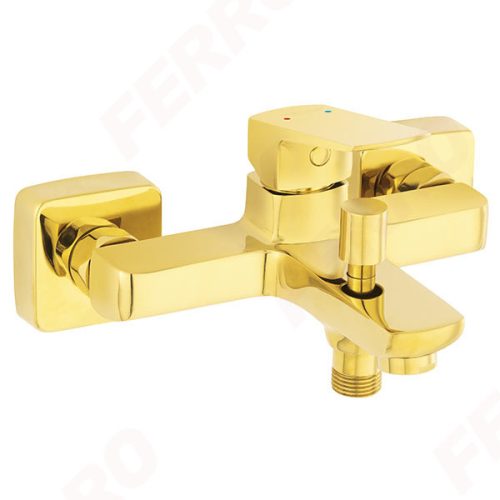 A Ferro VITTO Verdeline elegáns, arany színű fali kádcsaptelep tökéletes választás, ha a fürdőszobában a luxus megjelenést szeretnéd praktikus, modern műszaki tartalommal párosítani. Letisztult formavilága és fényes arany felülete karakteres fókuszponttá teszi a teret, különösen jól mutat világos burkolatokkal vagy minimalista enteriőrben.
