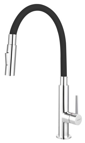 A Ferro Zumba Slim króm - fekete színű, flexibilis kifolyós konyhai csaptelep a modern konyhák egyik legpraktikusabb megoldása. Letisztult, elegáns megjelenése tökéletesen illeszkedik kortárs és minimalista enteriőrökbe, miközben a mindennapi használat során maximális rugalmasságot és kényelmet biztosít.