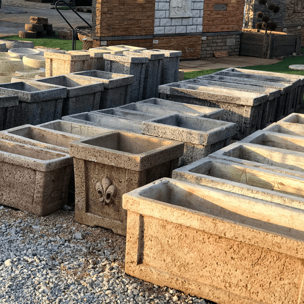 Kis méretű, télálló kerti váza kő hatású felületképzéssel.