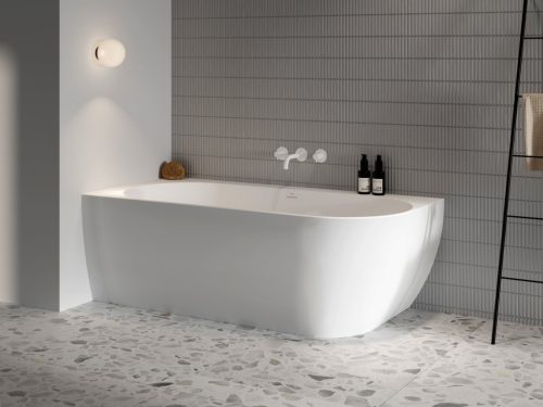 A Freedom Corner kombinálja a sarokkádak előnyeit a szabadon álló kádak előnyeivel. Az eredmény egy rendhagyó, mégis praktikus design. Bal változat.