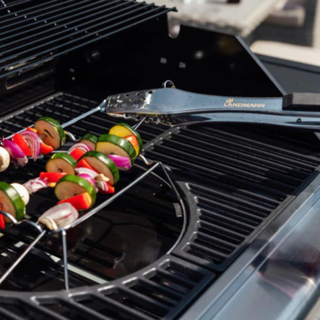 Landmann gázgrill négy égőfejjel és infra oldalégővel, MODULUS rendszerű grillráccsal.
