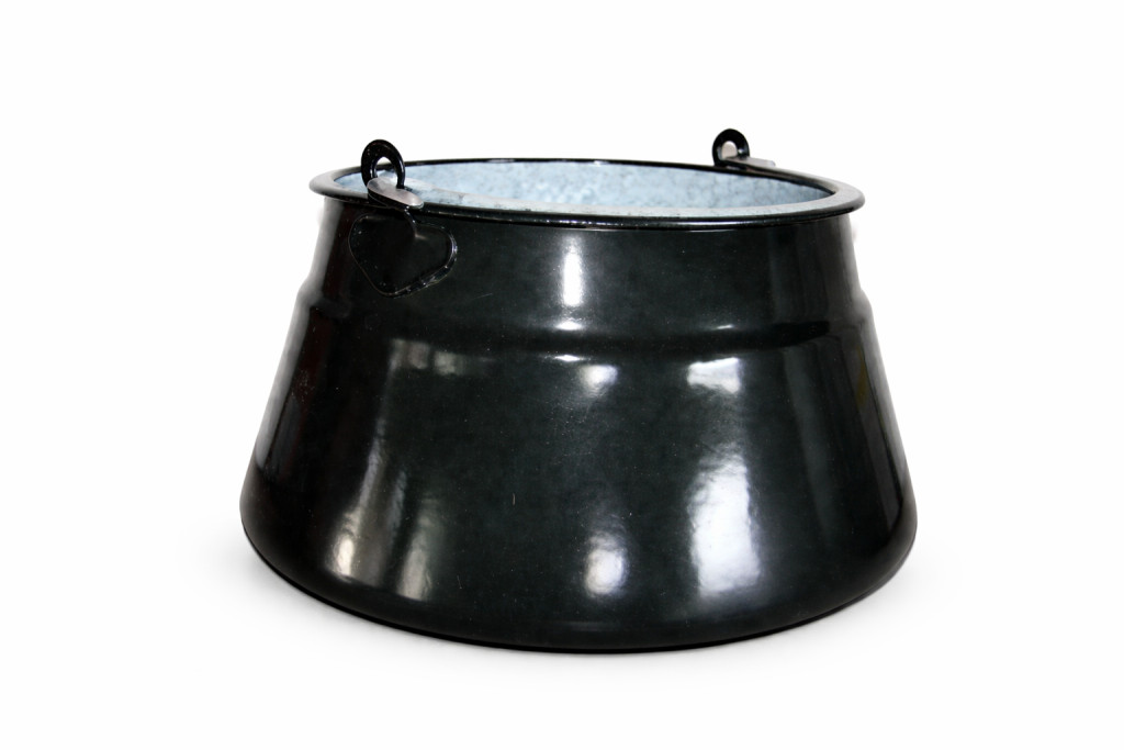 Ideális halászlé vagy más levesek főzéséhez szabadtéri tűzhelyeken. Űrtartalom: 14 liter Anyaga: Könnyen tisztán tartható zománcozott vas Szűkülő szája miatt nehezebb a leveseket véletlenül kilöttyinteni, kikavarni.