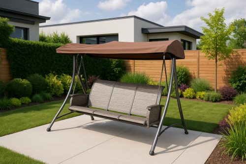 Háromszemélyes hintaágy napellenzővel barna színben!