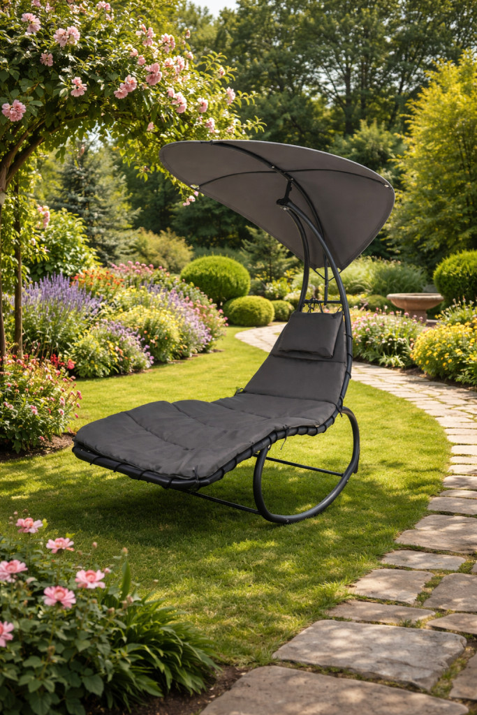 Hintaszék napellenzővel szürke Ergonomikus kerti hintaszék – tökéletes szabadtéri kikapcsolódáshoz. A fotel stílusa tökéletesen illeszkedik egy modern terasz vagy kert elrendezéséhez. A szék stabilitását és biztonságát egy megfelelően profilozott keretnek köszönheti, amely lehetővé teszi a ringatást. Felépítése nagyon erős és tartós az erős csöveknek köszönhetően. A tető, amely véd a nap és az UV sugárzás ellen, lehetővé teszi a pihenést és kellemes árnyékot biztosít. A csomag tartalmaz egy párnát, amely növeli a puhaság érzetét és kellemes pihenést biztosít.   Anyaga: poliészter, fém Színe: szürke Maximális terhelés: 110 kg A napernyő méretei: 165 x 116 cm A termék méretei: 183 x 178 x 76 cm