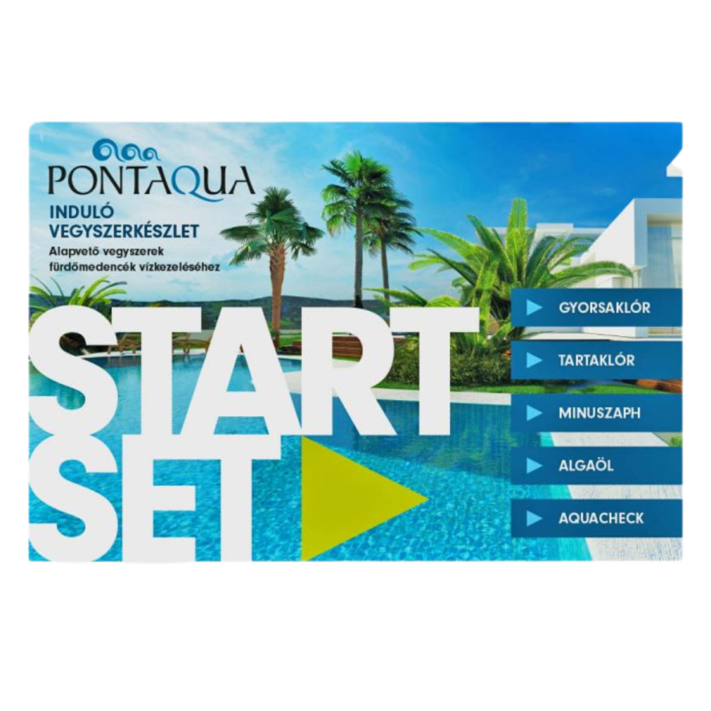 START SET Induló vegyszerkészlet családi medencéhez A Pontaqua vegyszercsomagja medencefeltöltés utáni vízkezeléshez. Minden, amire szükséged lehet egy medence vízének tisztán tartásához. Szakértők által válogatva, kedvezőbb áron. Tartalom: A GYORSAKLÓR felhasználásával elvégezhetünk egy kezdő klórsokkot, amivel fertőtlenítjük a vizet. Gyorsan oldódik, minden baktériumot elpusztít. A TARTAKLÓR folyamatos, medence térfogat, illetve szabad-klór tartalom szerinti adagolásával fenntarthatjuk a víz tisztaságát. AZ ALGAÖL segít megelőzni az alga és a különféle gombák, spórák megtelepedését a vízben és a medence falán, gépészetében. A MINUSZAPH segítségével beállíthatjuk a víz pH értékét. Ez a hazai vizekben jellemzően magas, ezért csökkenteni szükséges, de előtte mindenképp mérjük meg, majd törekedjünk, hogy 7,2-7,6 között legyen egész szezonban. A csomagban találunk még AQUACHEK vízelemzőt, amivel megmérhetjük a víz kémiai jellemzőit, így pontosan adagolhatjuk a vegyszereket, a kívánt értékek beállításához.