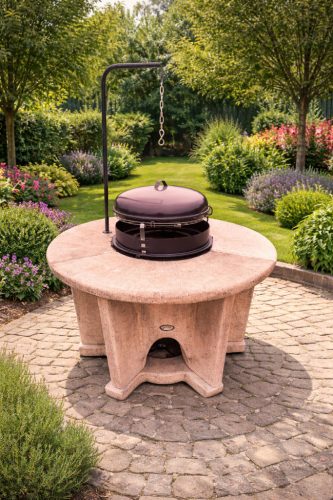 Kerti szalonnasütő, bográcsoló és grillező kő hatású felületkidolgozással.
