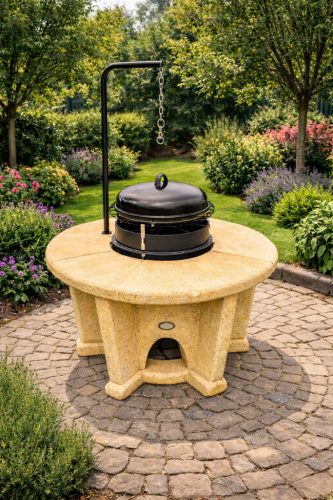 Kerti szalonnasütő, bográcsoló és grillező kő hatású felületkidolgozással.