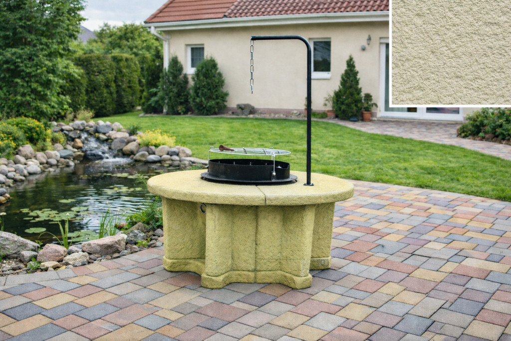 Kerti szalonnasütő, bográcsoló és grillező kő hatású felületkidolgozással.