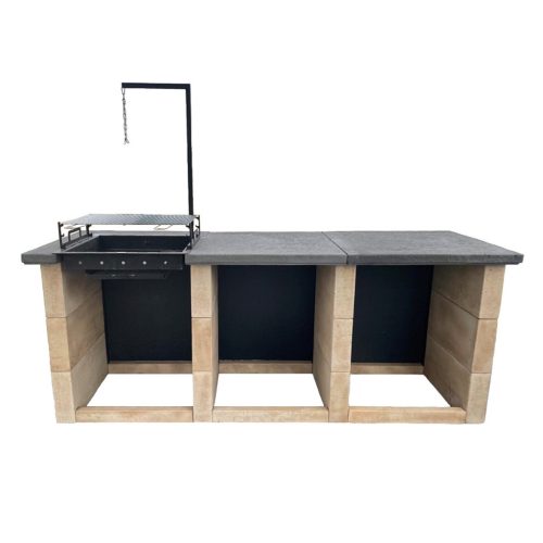 A kép a mintatermékről készült, a bemutatás célját szolgálja, ez alapján méreteiben és funkcióiban megegyező új termék rendelhető többféle színben! Telepíthető kül és beltéren egyaránt! A tűztér, a grillrács,illetve a bográcstartó állvány tartozék!