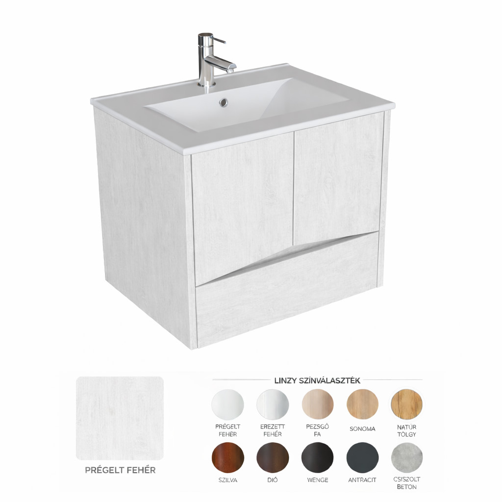 Linzy alsószekrény+mosdó 60 2A1F prégelt fehér