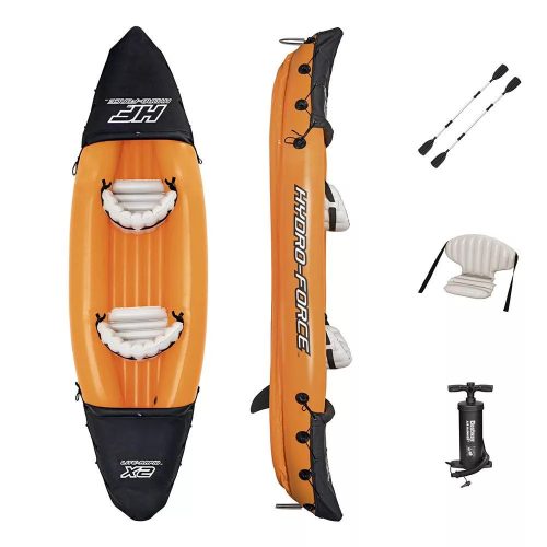 A Bestway Lite-Rapid X2 felfújható Kayak szett rendkívül strapabíró: karcolás, ütés és UV álló kivitelben. Álló- és folyóvizekre egyaránt alkalmas pihenés vagy sportolás céljából. Az áramvonalas kialakítás és állítható ülések biztosítják a kényelmes, élményteli evezést.