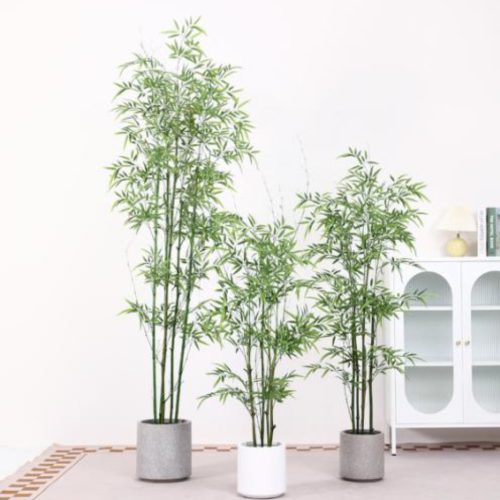 Ez a nagyméretű bambusz műnövény elegáns és természetközeli hangulatot teremt, miközben látványos zöld falhatást biztosít a térben. Karcsú, felfelé törő szárai és sűrű lombja rendezett, friss összképet adnak, amely jól illik modern és klasszikus enteriőrökbe is.