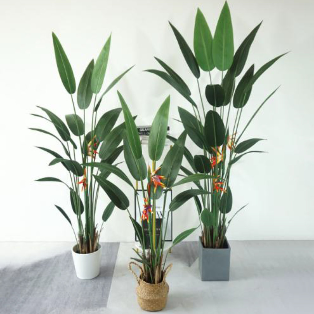 Ez a nagyméretű papagájvirág műnövény igazi trópusi látványosság, amely élénk, virágzó megjelenésével azonnal magára vonja a figyelmet. A karakteres levelek és a különleges virágforma együtt egy exkluzív, dekoratív összhatást hoznak létre.