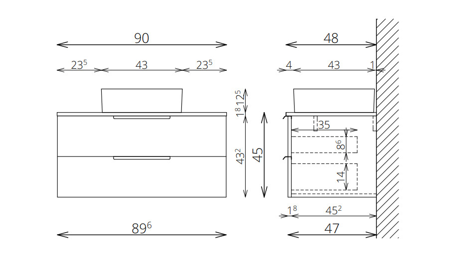 A bútor egyik legnagyobb előnye a tágas, jól szervezhető fiókrendszer, amely elegendő helyet biztosít a piperecikkek, kozmetikumok és fürdőszobai kiegészítők számára.