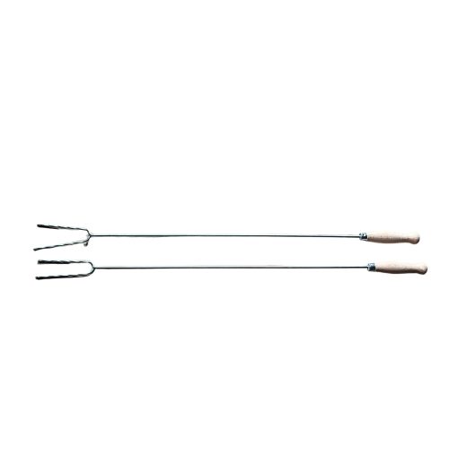 A szalonnasütő nyárs 80 cm-es hosszának köszönhetően ideális méretekkel rendelkezik. Kényelmesen készíthet rajta különböző finomságokat. Csavart villáknak köszönhetően a sütés közben az étel nem csúszik le. A fából készült nyél nagyszerű fogást és kényelmes használatot biztosít.