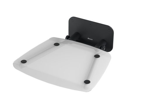 Ovo B II. összecsukható zuhanyülőke. Fekete kivitelű szerkezet átlátszó Clear üléssel. Négyszögletes forma.