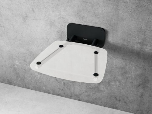 Ovo B II zuhanyülőke, melynek szerkezete fekete, ülőfelülete átlátszóan fehér Opal. Négyszögletes forma.