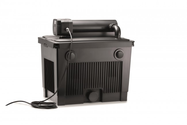 Többkamrás szűrőedény: 4 különböző szűrőanyaggal (nagylyukú és finomlyukú szűrőszivacsok, japán szűrőfonat, biofelületű elemek) és 2 elválasztó fallal az optimális vízáramlat érdekében Az összes szükséges csatlakozóval együtt