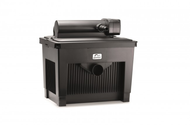 Pontec MultiClear 25000 átfolyós tószűrő készlet UVC-vel. Tószűrő készlet „Tisztavíz garanciával”, 25.000 l-es tavakhoz javasolt használata ( halasítás nélkül, közepesen / erősen növényesített tavak esetén számolva ). Bio-mechanikus szűrőanyagok és integrált 24 Wattos UV-C előtisztító készülék.