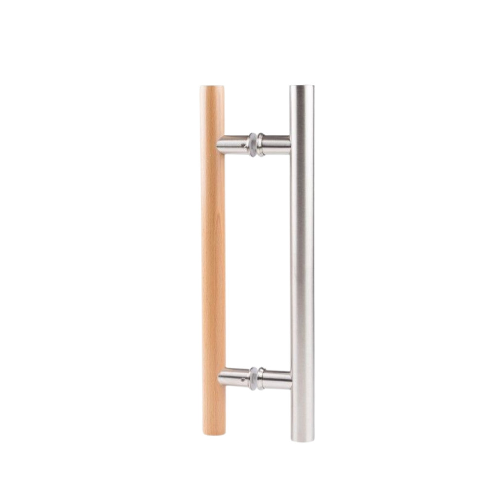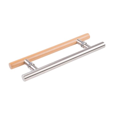 Rúdfogantyú pár, 32x450mm, szálcsiszolt krómacél/kőris, 8-12mm üveglapokhoz