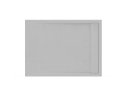 Aszimmetrikus Sandstone Pro zuhanytálca könnyített öntött márványból, akril-poliuretán permetezett bevonattal. Finoman érdesített felület, amely stukkóhatású textúrát idéz. Smoke Grey színben.