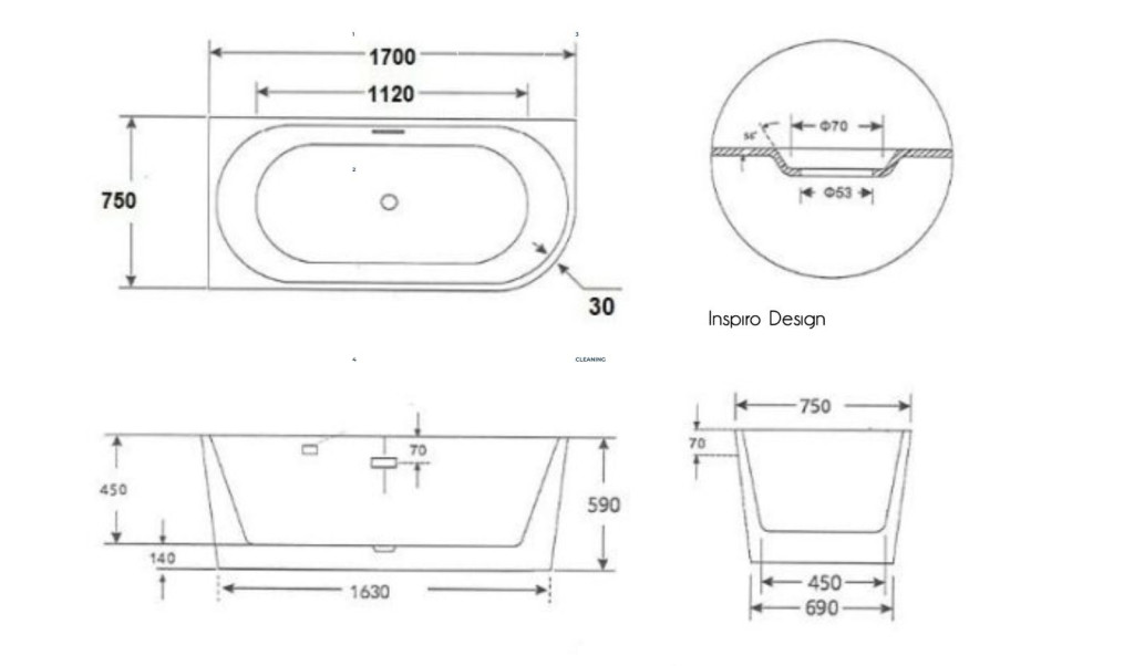 Inspiro Valentino LUX 180x88x68cm szabadon álló kád