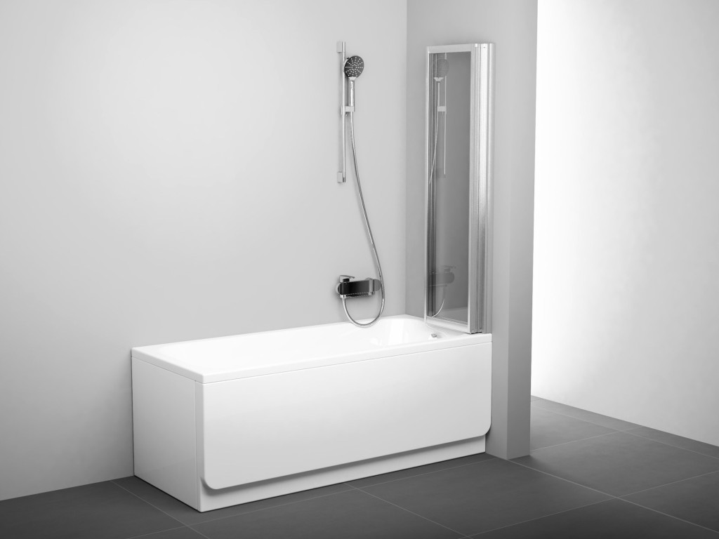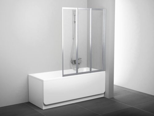 Háromrészes, összecsukható fürdőkádparaván az aszimmetrikus BeHappy II kádhoz és a téglalap alakú kádakhoz. Matt króm kivitelben és tiszta üvegbetéttel, Ravak AntiCalc® védőréteggel. Forgatható termék bal és jobb oldali változathoz.