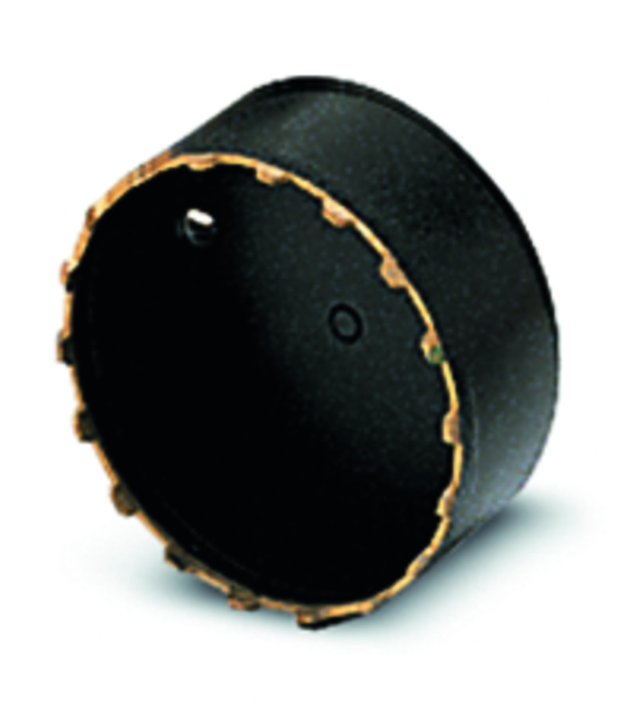 A Rubi FORAGRES 120 mm-es gyémánt lyukfúró fej professzionális megoldás ütés nélküli, vizes fúráshoz. Kifejezetten kemény burkolóanyagok – például greslap, porcelán, gránit, márvány, kő és üveg – precíz lyukasztására és körkivágására készült.