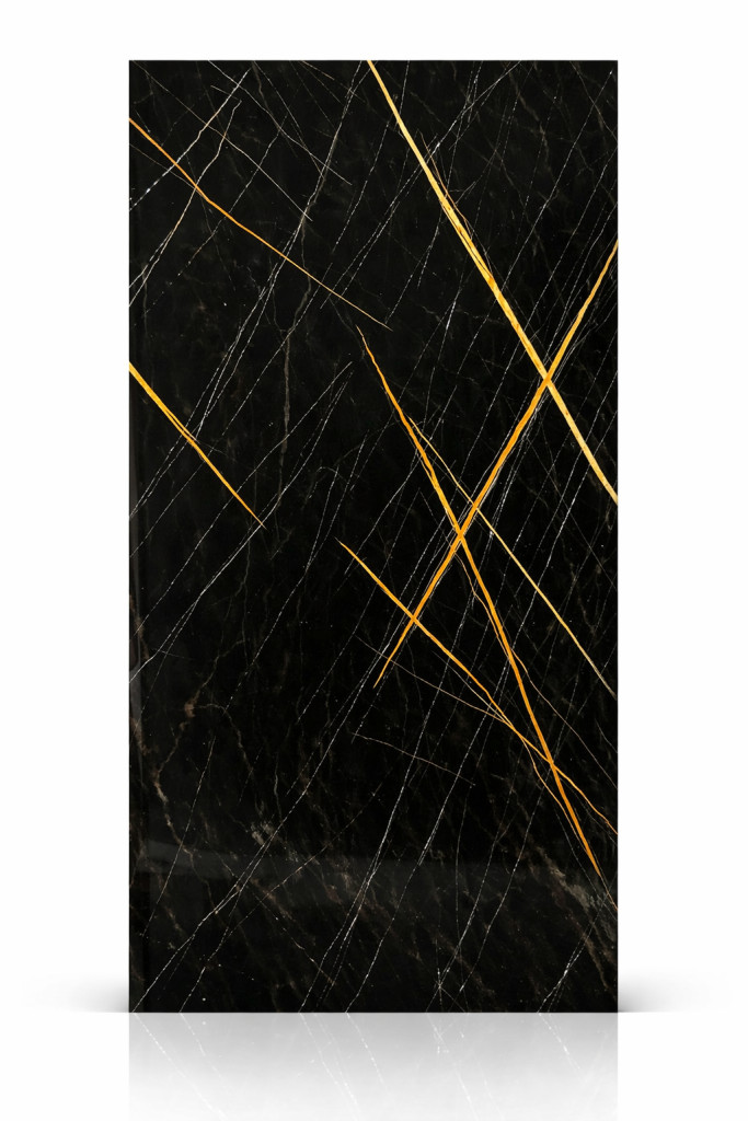 Beltéri SPC falpanel 2800x1200x4 mm - Fényes fekete, arany erezettel