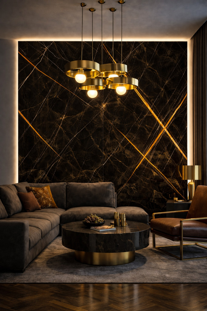 SPC falpanel 2800×1200×4 mm – Fekete-arany márvány mintás, fényes felület